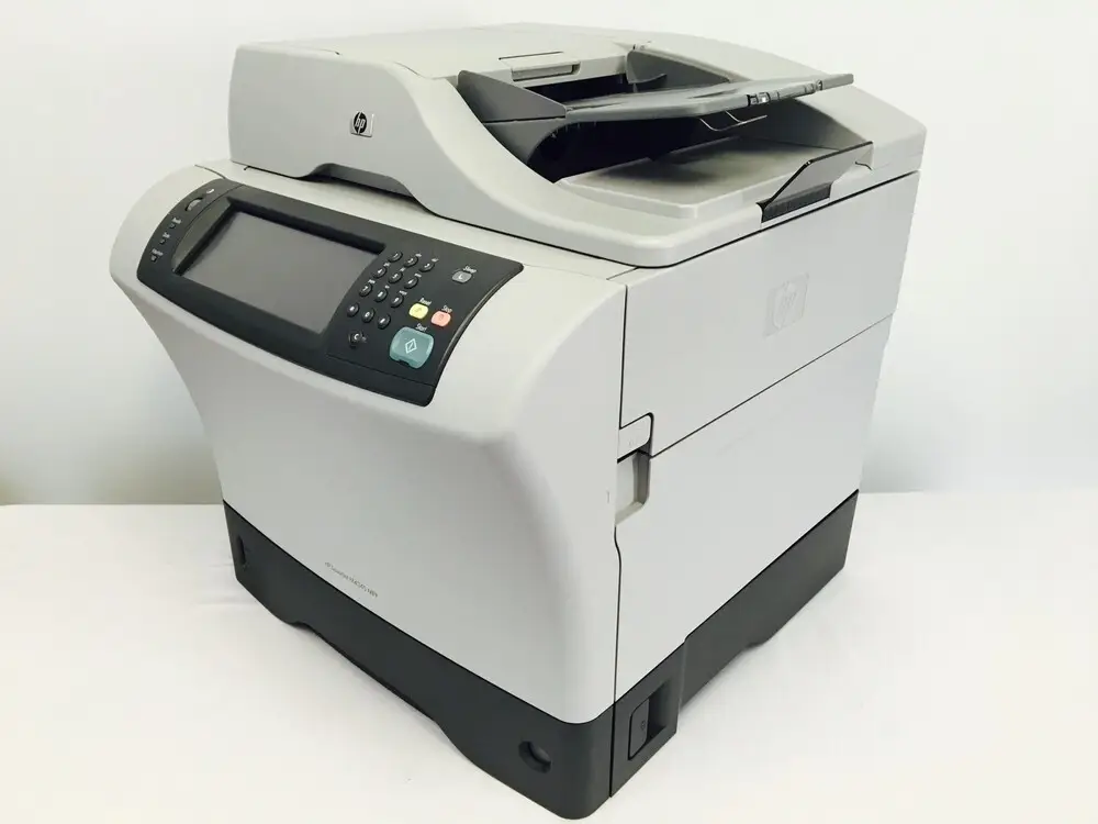 The HP LaserJet 4345MFP supports printing, copying, scanning, and faxing functions, providing a complete multifunction solution.