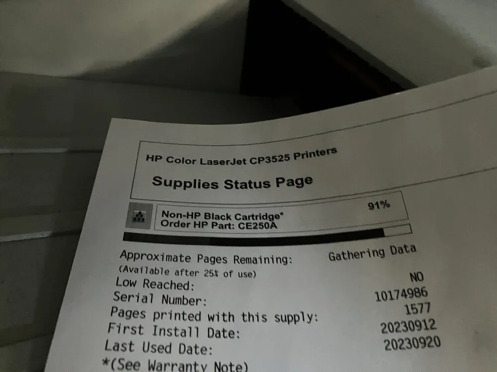 Despite its strong features, the HP CP3525DN is relatively bulky and may require significant office space. The initial cost of toner cartridges can be high, which might increase operating expenses. It lacks modern wireless connectivity options such as Wi-Fi or Bluetooth. The maximum paper input capacity is moderate compared to newer office printers, which may necessitate frequent reloading in high-volume environments. The printer’s color output, while good, may not match newer models for photo-quality prints. Firmware updates and driver support may be limited as the model gets older.