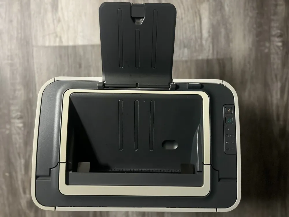 The device lacks advanced finishing options such as duplex printing or automatic document feeder.