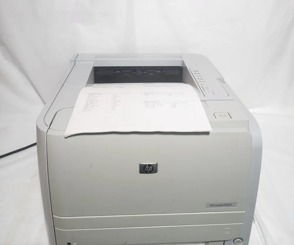 The HP LaserJet P2035 is a monochrome laser printer designed for small office and home office use, offering reliable print performance. It utilizes HP's fast and efficient laser technology, capable of printing up to 28 pages per minute with a resolution of up to 1200x1200 dpi. The printer supports PCL 5e, PCL 6, and PostScript printing languages, allowing compatibility with diverse operating systems. Connectivity is enabled through a standard Hi-Speed USB 2.0 port providing quick and seamless integration with most computers. The paper tray holds up to 250 sheets which support various media sizes including A4 and Letter. Overall, the device is compact, energy efficient, and easy to maintain, suitable for moderate volume printing tasks.