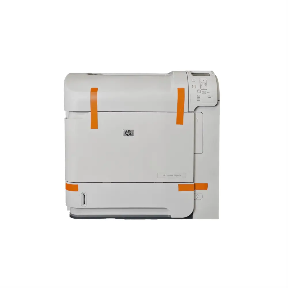 The HP LaserJet P4014N is a monochrome laser printer designed for medium to large office environments requiring high-speed, reliable black-and-white printing. It features a 600 MHz processor coupled with 256 MB of RAM (expandable up to 768 MB) to handle complex print jobs efficiently. The 600 x 600 dpi print resolution ensures sharp text and graphic output suitable for professional documents. Connectivity options include a standard built-in Ethernet port, allowing network sharing capabilities for multiple users. The printer supports multiple paper sizes and offers expandable input tray options, supporting a total capacity of up to 1,600 sheets. Its duplex printing capability helps to reduce paper consumption by enabling automatic double-sided printing.