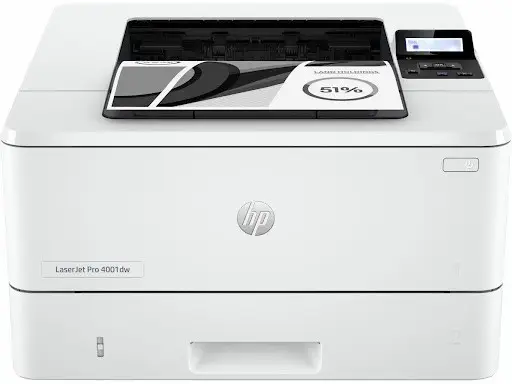 The HP LaserJet Pro 4001dw uses monochrome laser printing technology for fast and high-quality black-and-white output.