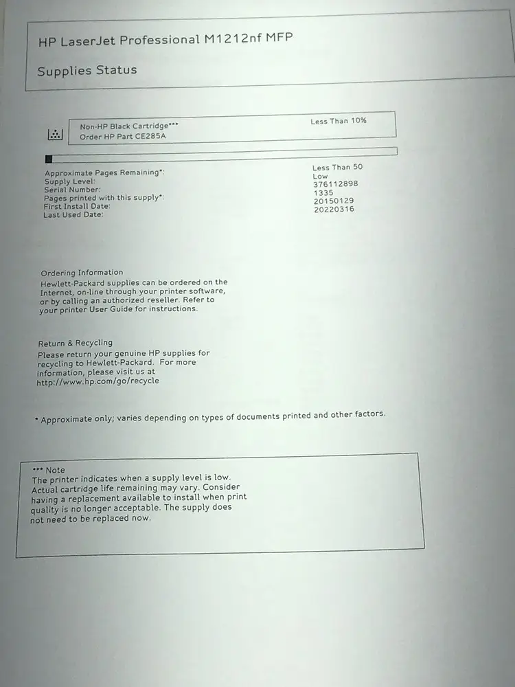 Model | HP LaserJet Pro M1212nf |