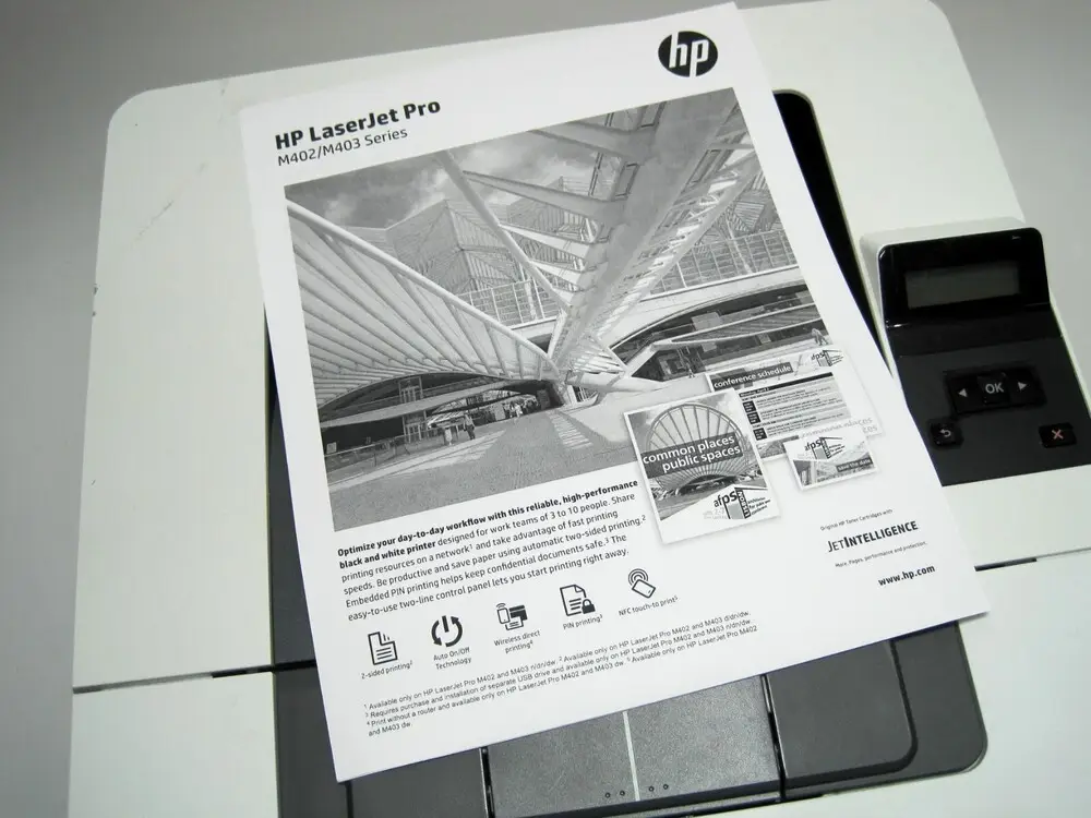 The HP LaserJet Pro M402 can print up to 38 pages per minute in black and white.