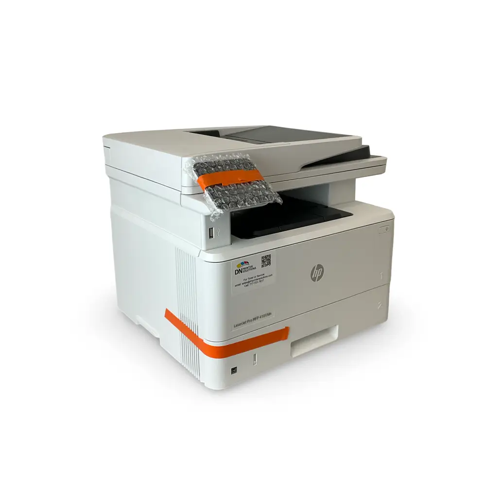 The HP LaserJet Pro MFP 4101fdn offers printing, scanning, copying, and faxing capabilities integrated into one multifunction device.