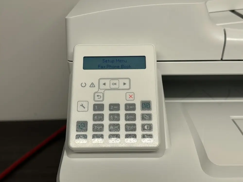 It is a multifunction monochrome laser printer designed for office use, featuring printing, scanning, copying, and faxing capabilities.