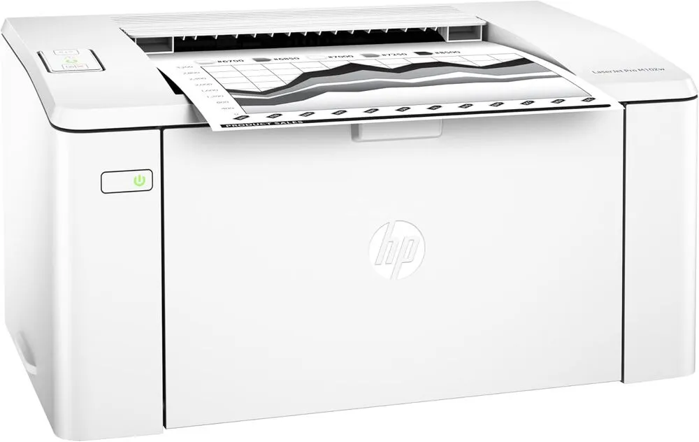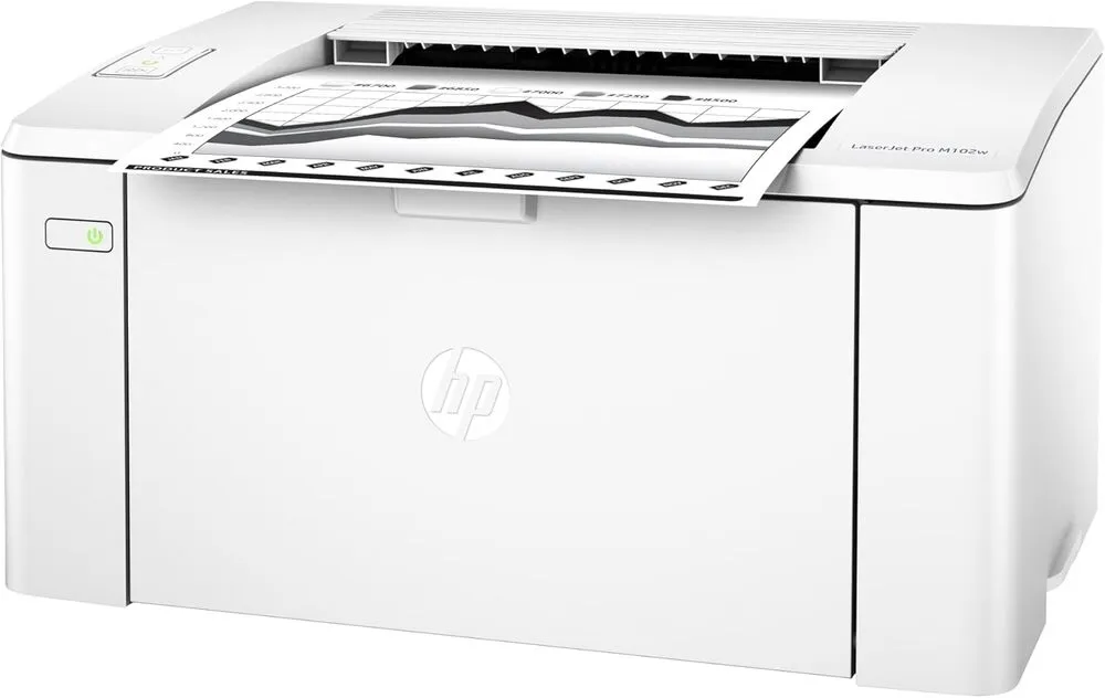 The HP LaserJet Pro M102w is a monochrome laser printer designed for small office and personal use. It utilizes HP's FastRes 1200 resolution technology, delivering sharp black-and-white prints at up to 23 pages per minute. The printer supports wireless connectivity through built-in Wi-Fi, facilitating flexible placement and mobile printing via HP ePrint and Apple AirPrint. Featuring a 150-sheet input tray and 100-sheet output tray, the device handles basic document printing efficiently. The control panel includes a simple LCD indicator with minimal buttons, focusing on straightforward operation. Its compact design incorporates energy-saving functions and is compatible with Windows and macOS platforms.
