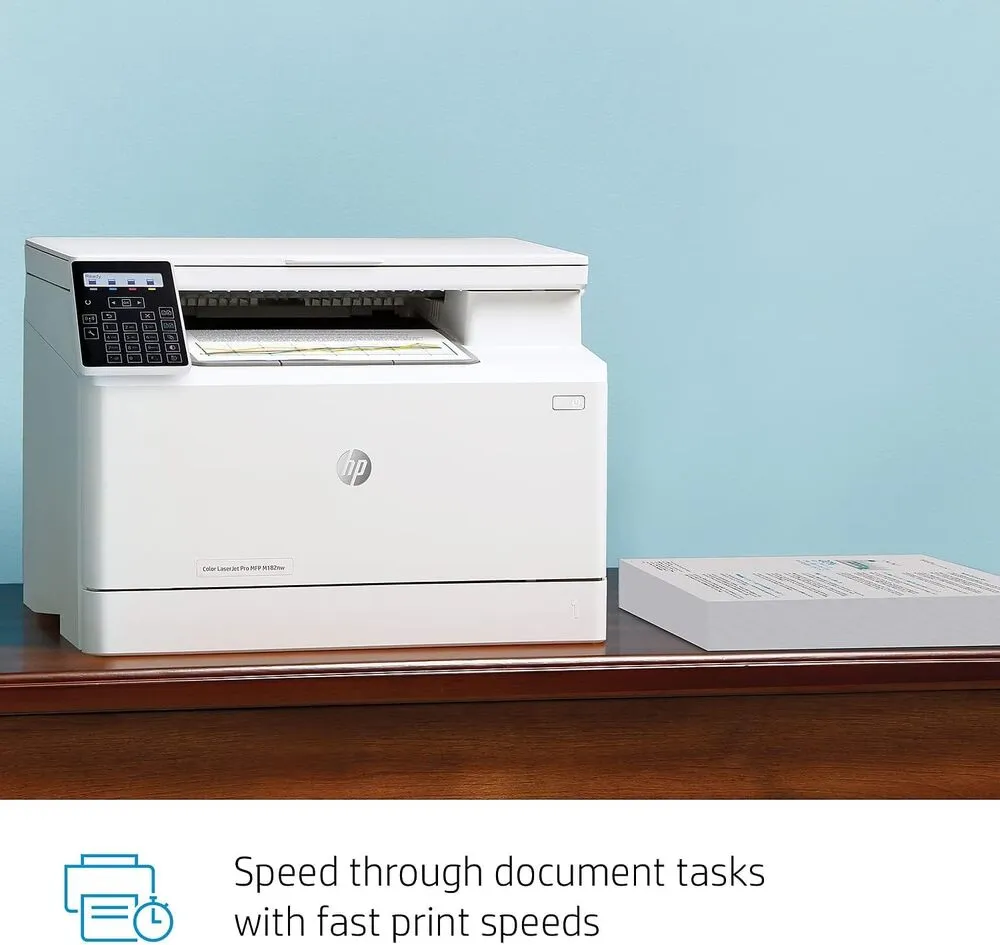The HP LaserJet Pro M182nw is a wireless monochrome laser printer designed for small to medium office environments. It supports printing, copying, and scanning functionalities integrated into a compact all-in-one unit. Featuring a resolution of up to 600 x 600 dpi, it ensures crisp text output suitable for professional documents. The device includes built-in Wi-Fi, Ethernet, and USB 2.0 interfaces for versatile connectivity options. The printer is powered by an efficient 600 MHz processor and equipped with 128 MB of RAM, enabling smooth document processing. Its monthly duty cycle is rated at up to 8,000 pages, assuring reliable performance under moderate office workloads.