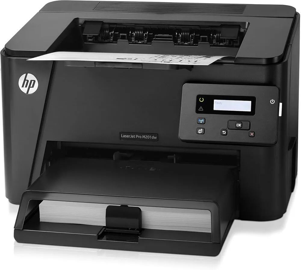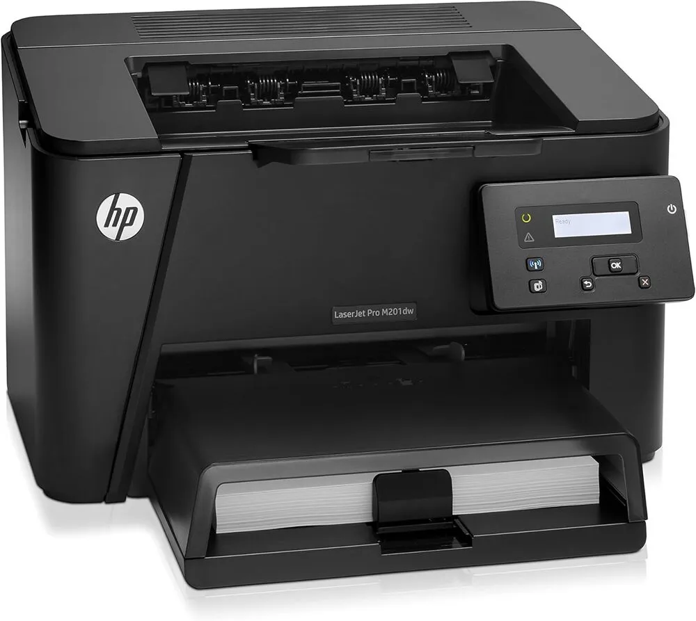 The HP LaserJet Pro M201dw is a monochrome laser printer designed for small office and home office environments. It incorporates a print resolution of up to 1200 x 1200 dpi, providing sharp, crisp text documents. The device supports wireless networking via Wi-Fi and Ethernet connectivity, allowing flexible placement and easy sharing among multiple users. It features automatic duplex printing for efficient paper usage and includes a fast printing speed of up to 28 pages per minute. A user-friendly 2-line LCD panel facilitates basic control and status monitoring. Powered by a 525 MHz processor with 128 MB RAM, it ensures reliable performance for everyday printing tasks.