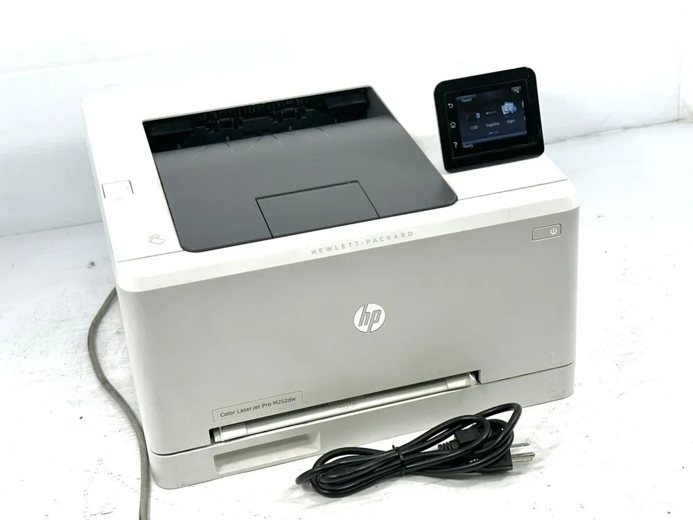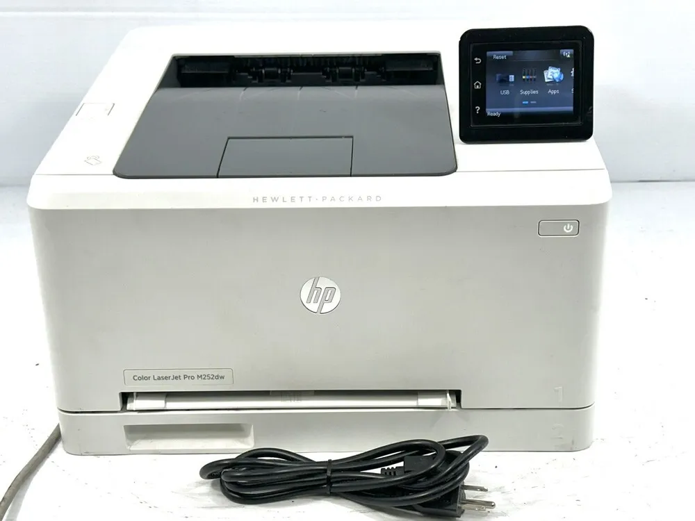 The HP LaserJet Pro M252DW is a color laser printer designed for small to medium office environments. It utilizes a laser printing technology that delivers sharp text and vibrant color graphics. The printer supports wireless and Ethernet connectivity, allowing flexible integration into office networks. It features a compact design with a 150-sheet input tray and 100-sheet output tray, optimized for moderate volume daily printing. The device supports automatic duplex printing, which enhances paper efficiency. It uses HP's toner cartridges with ColorSphere toner to ensure consistent color quality.