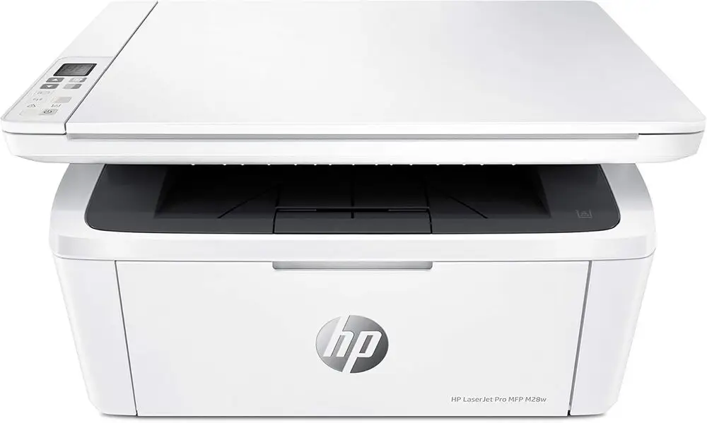 The HP LaserJet Pro M28W prints only in monochrome, which limits it for users needing color printing capabilities. It does not have scanning or copying functionality, limiting its use to printing only. The print resolution, while adequate for text, may not satisfy high-quality graphic printing demands. The paper input capacity is modest, which may require frequent refills during high volume tasks. It lacks an automatic duplex printing feature, so users must manually flip pages for double-sided printing. The printer’s display interface is minimal, offering limited user feedback or configuration options.