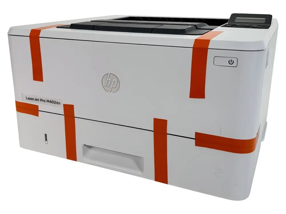 The HP LaserJet Pro M402dn is a monochrome laser printer built for small to medium office environments. It features a print resolution of up to 1200 x 1200 dpi with HP FastRes 1200 technology for sharp text and graphics. The device is equipped with a 400 MHz processor and comes standard with 256 MB of RAM, expandable for enhanced performance during complex print tasks. Its monthly duty cycle is up to 80,000 pages, supporting heavy print workloads. The M402dn includes a built-in Gigabit Ethernet port ensuring reliable network connectivity and robust security features. Designed with HP's JetIntelligence technology, it offers efficient toner usage and energy-saving modes.
