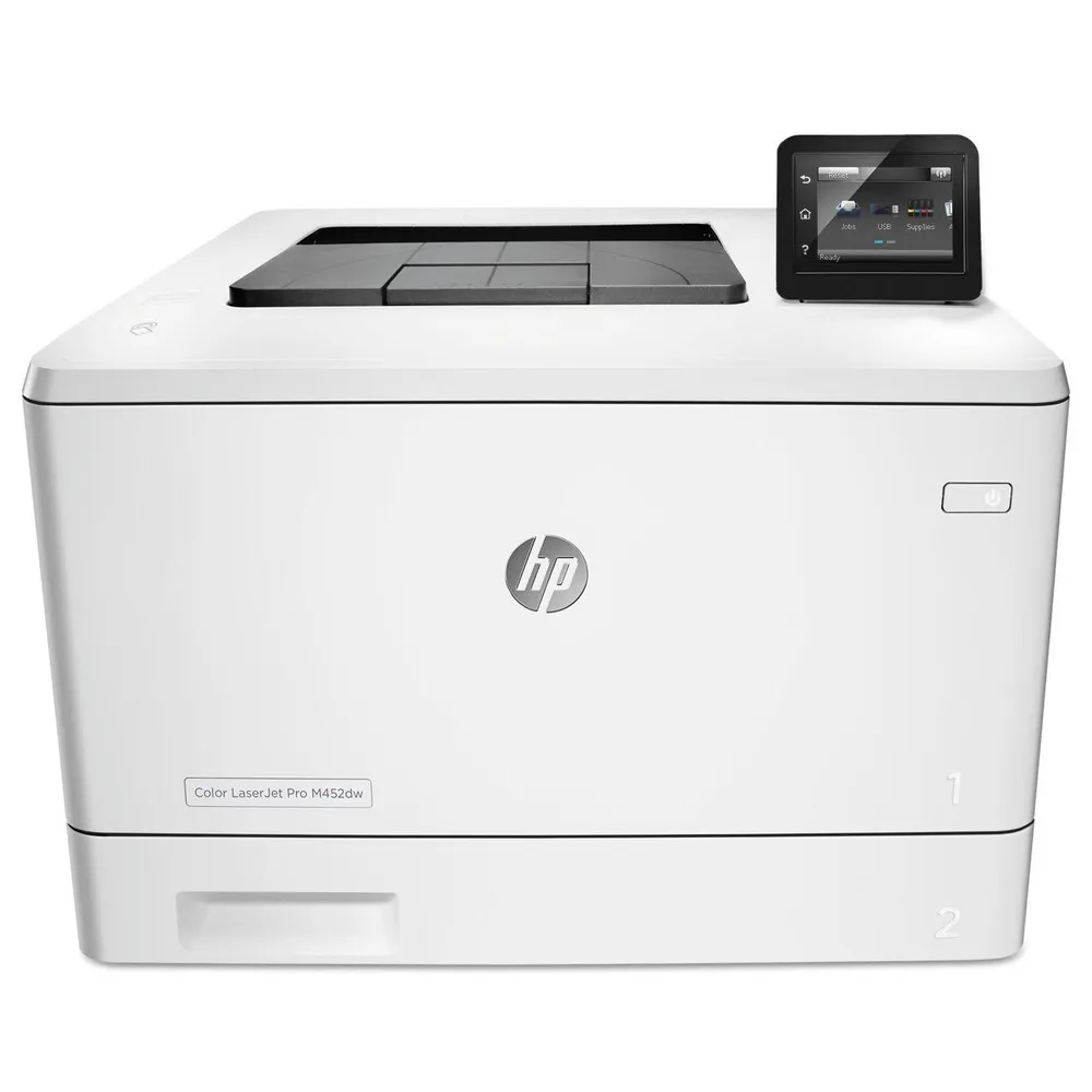 The HP LaserJet Pro M452DW is a color laser printer designed for small to medium-sized office environments. It supports print speeds up to 28 pages per minute in both color and black-and-white, leveraging a laser printing engine for high-quality output. The device offers wireless, Ethernet, and USB connectivity, providing flexible integration into various network environments. It features automatic duplex printing, which helps reduce paper consumption by printing on both sides of the page. The printer uses HP's JetIntelligence toner cartridges for enhanced efficiency and reliability. Its compact design and intuitive control panel simplify office workflow and maintenance.