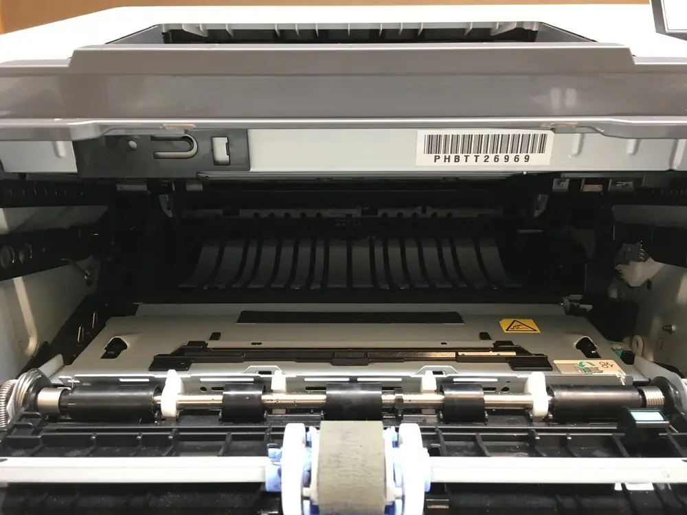 The printer offers a maximum print speed of up to 45 pages per minute for black and white documents.