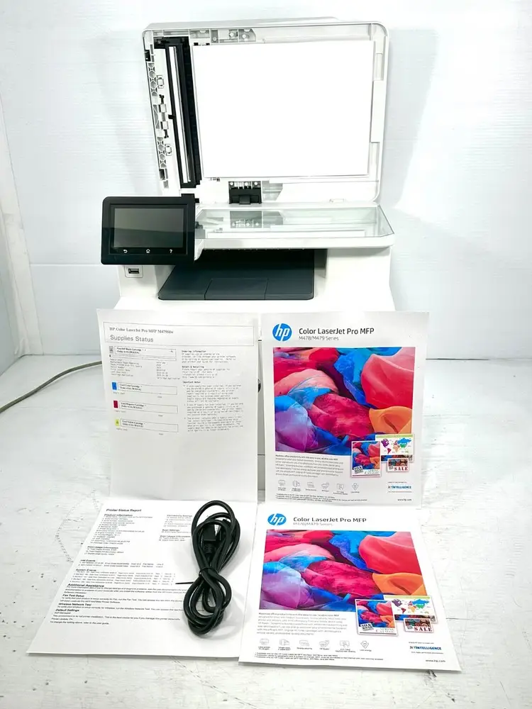 The HP LaserJet Pro MFP M479FDW is a multifunction color laser printer designed for office use, offering printing, scanning, copying, and faxing capabilities in a single device. It operates with a print speed of up to 28 pages per minute, supporting a resolution of up to 600 x 600 dpi, ensuring sharp and clear print quality. The device is equipped with a 4.3-inch color touchscreen interface for easy navigation and control. Connectivity options include Gigabit Ethernet, USB 2.0, Wi-Fi 802.11n, and Wi-Fi Direct with automatic setup, facilitating flexible network integration. The M479FDW supports automatic two-sided (duplex) printing to reduce paper usage and enhance productivity. It uses HP's PageWide Technology with original HP toner for reliable and professional results.