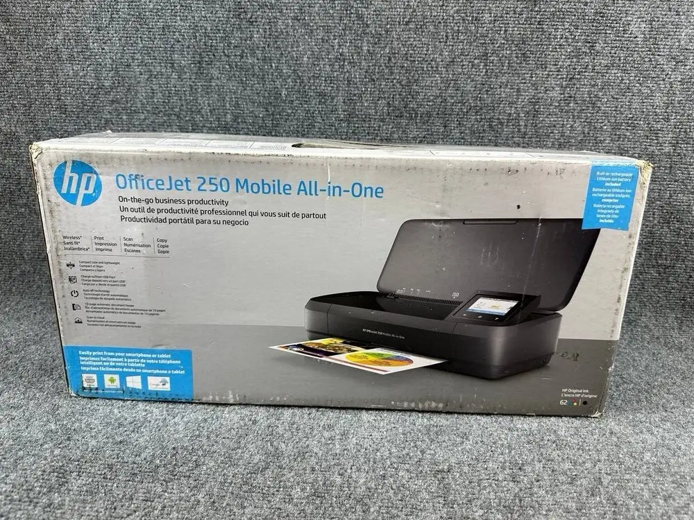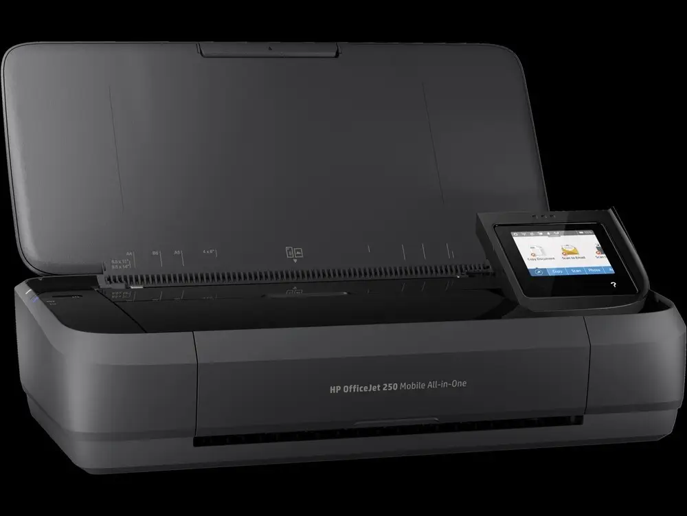 The HP Officejet 250 is a compact, portable all-in-one printer that integrates printing, scanning, and copying functionalities, designed primarily for mobile office professionals. It features inkjet printing technology with a maximum print resolution of up to 4800 x 1200 optimized dpi (color). The device uses the HP Thermal Inkjet technology combined with individual ink cartridges for efficient color and black-and-white printing. Connectivity options include USB 2.0 and Wi-Fi 802.11b/g/n, allowing easy wireless printing from compatible devices. Powered by a rechargeable lithium-ion battery, this printer supports mobile printing capabilities, including HP ePrint and Apple AirPrint, enhancing on-the-go productivity. Its compact size and integrated color touchscreen display facilitate simple operation and portability.