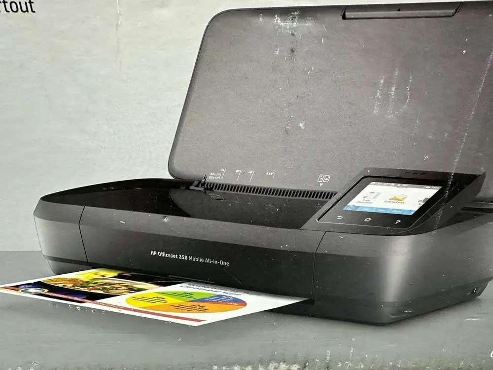 The HP Officejet 250 offers high-quality prints with vibrant colors due to its advanced inkjet technology and optimized resolution. Its portability stands out, facilitated by a rechargeable battery and compact design, enabling mobile printing without the need for power outlets. Wireless connectivity options such as Wi-Fi and support for mobile print services allow flexible and convenient printing from smartphones, tablets, and laptops. The integrated scanner and copier add multifunction versatility to the device, making it useful for on-the-go document management. The device supports multiple paper sizes and media types, accommodating diverse printing needs. Additionally, its touchscreen interface simplifies user interaction, making operation intuitive even for non-technical users.