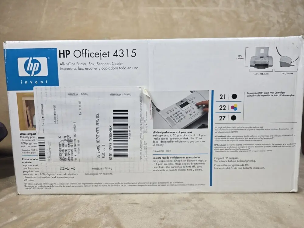 The HP OfficeJet 4315V supports printing, copying, scanning, and faxing functions in one all-in-one device.