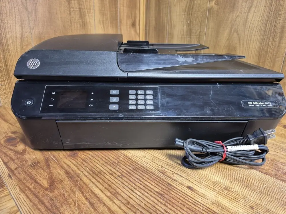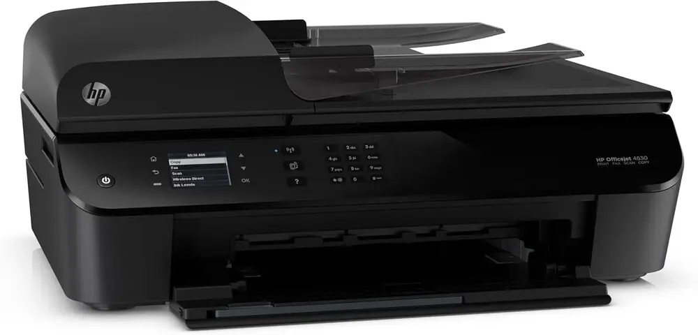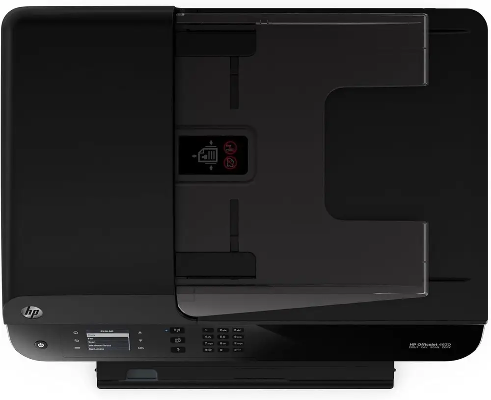 The HP Officejet 4630 is an all-in-one inkjet printer designed for small office and home office environments. It integrates printing, scanning, copying, and faxing functionalities into a single compact device. The printer supports wireless connectivity including Wi-Fi and Wi-Fi Direct for ease of network integration and mobile printing compatibility. It operates with HP's thermal inkjet technology, delivering color prints at a moderate speed suitable for light to medium volume tasks. The device features a small LCD display for navigating functions and provides compatibility with various paper sizes and types, including plain, photo, and envelopes. Additionally, it supports HP’s ePrint and AirPrint technologies for mobile device printing and cloud connectivity.