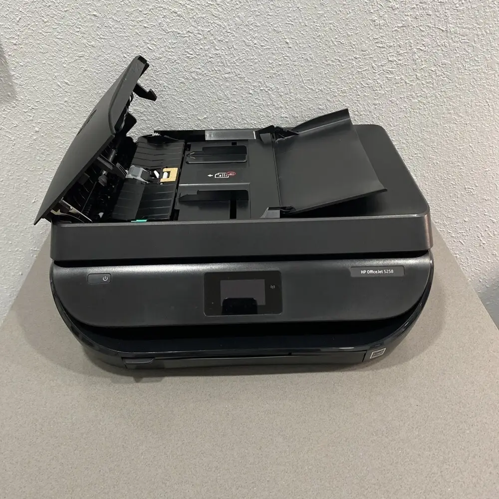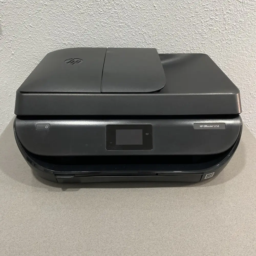 The HP OfficeJet 5258 is an all-in-one inkjet printer designed for small to medium office environments. It integrates printing, scanning, copying, and faxing functionalities in a single compact unit. The device utilizes HP's thermal inkjet technology to deliver sharp text and vibrant color prints. It supports a maximum print resolution of up to 4800 x 1200 optimized dpi for color printing. Connectivity options include USB 2.0 and Wi-Fi, enabling flexible wired and wireless operation. The built-in automatic document feeder (ADF) allows efficient multi-page scanning and faxing tasks.
