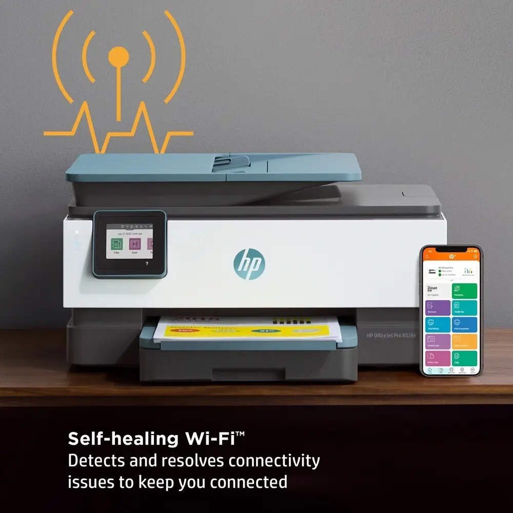 The OfficeJet Pro 8028 offers fast print speeds suitable for busy office environments.