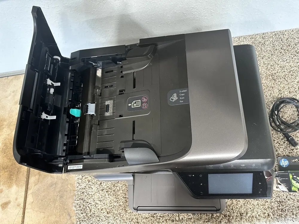 The HP Officejet Pro 8600 Plus is a multifunction inkjet printer designed for professional office use, launched in 2013. It supports printing, scanning, copying, and faxing, all integrated into a single device. The printer offers a print resolution up to 4800 x 1200 optimized dpi for high-quality color prints. Utilizing HP's Officejet technology, it enables fast color printing at up to 22 pages per minute and black at up to 34 ppm. Connectivity options include Ethernet, Wi-Fi Direct, and USB ports, enabling versatile network integration and mobile printing capabilities. This model features an automatic document feeder (ADF) with a 35-sheet capacity and supports two-sided printing for enhanced productivity.