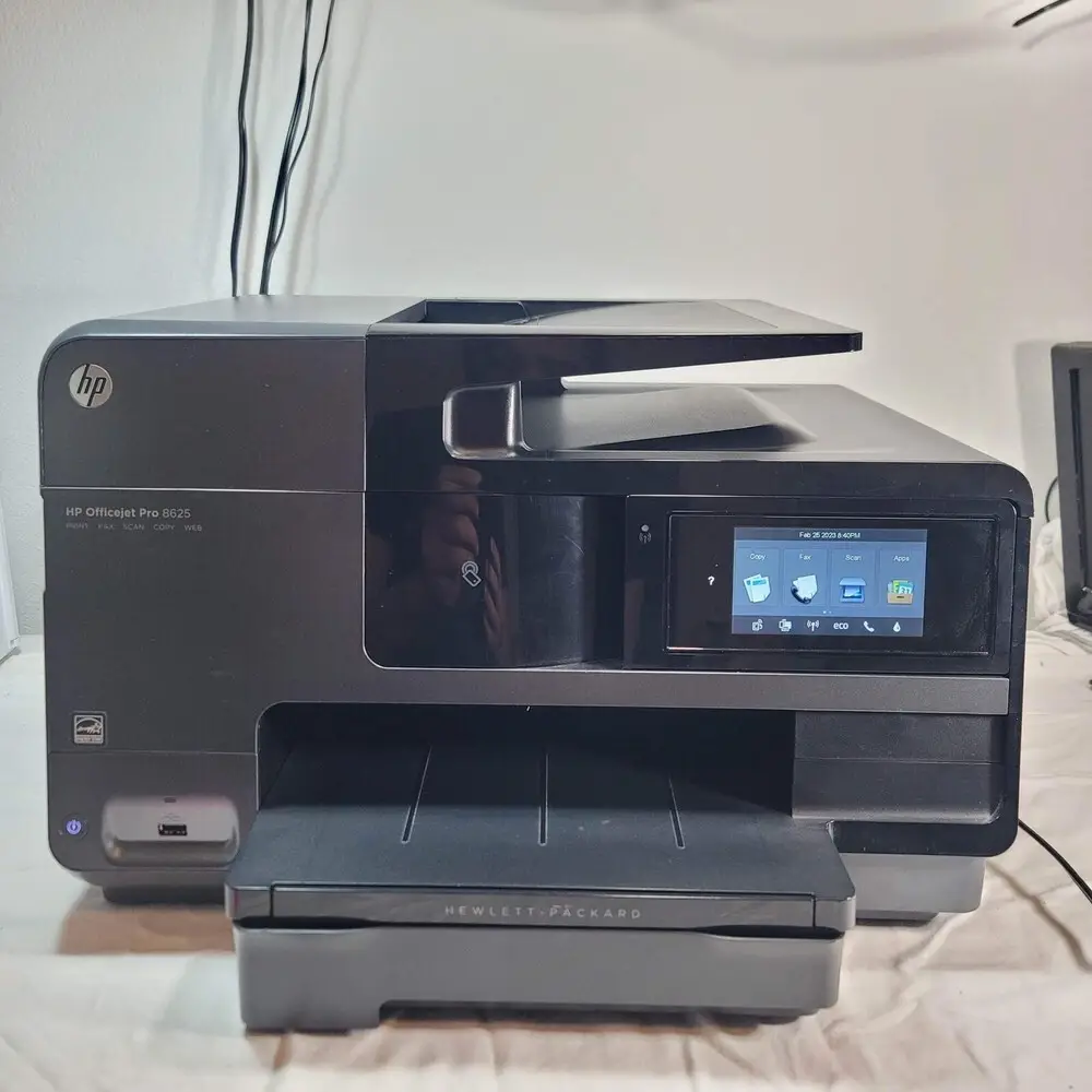 The HP OfficeJet Pro 8625 is a multifunctional inkjet printer designed for small to medium-sized offices. Equipped with print, copy, scan, and fax functions, it supports fast printing speeds up to 22 pages per minute black and 18 pages per minute in color. It features an automatic document feeder (ADF) with a capacity of up to 35 sheets for efficient batch scanning and copying. Connectivity options include built-in Wi-Fi, Ethernet, and USB 2.0 interfaces for versatile network integration. The device supports mobile printing solutions such as HP ePrint, Apple AirPrint, and Mopria-certified printing. Its 2.65-inch color touchscreen interface facilitates easy navigation and control of printer settings and workflows.