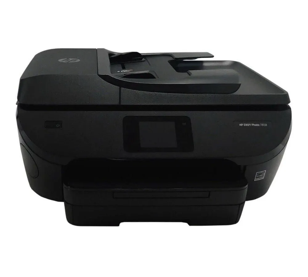 The HP Envy Photo 7858 All-in-One Printer is designed as a versatile office electronic device that combines printing, scanning, copying, and photo capabilities within a single system. It supports wireless connectivity through Wi-Fi and Bluetooth, enabling seamless printing from smartphones, tablets, and computers. The device utilizes HP Thermal Inkjet technology, delivering a maximum print resolution of up to 1200 x 1200 optimized dpi for sharp text and vibrant images. Its automatic two-sided (duplex) printing feature helps reduce paper consumption efficiently. The front touchscreen provides intuitive control and easy navigation through menus and functions. Additionally, the printer supports various paper sizes and types, including photo paper and envelopes, making it adaptable to different printing needs.