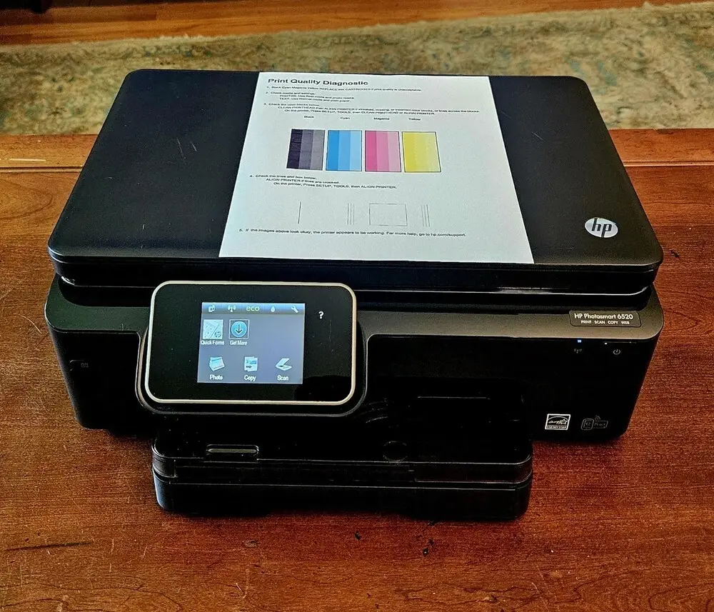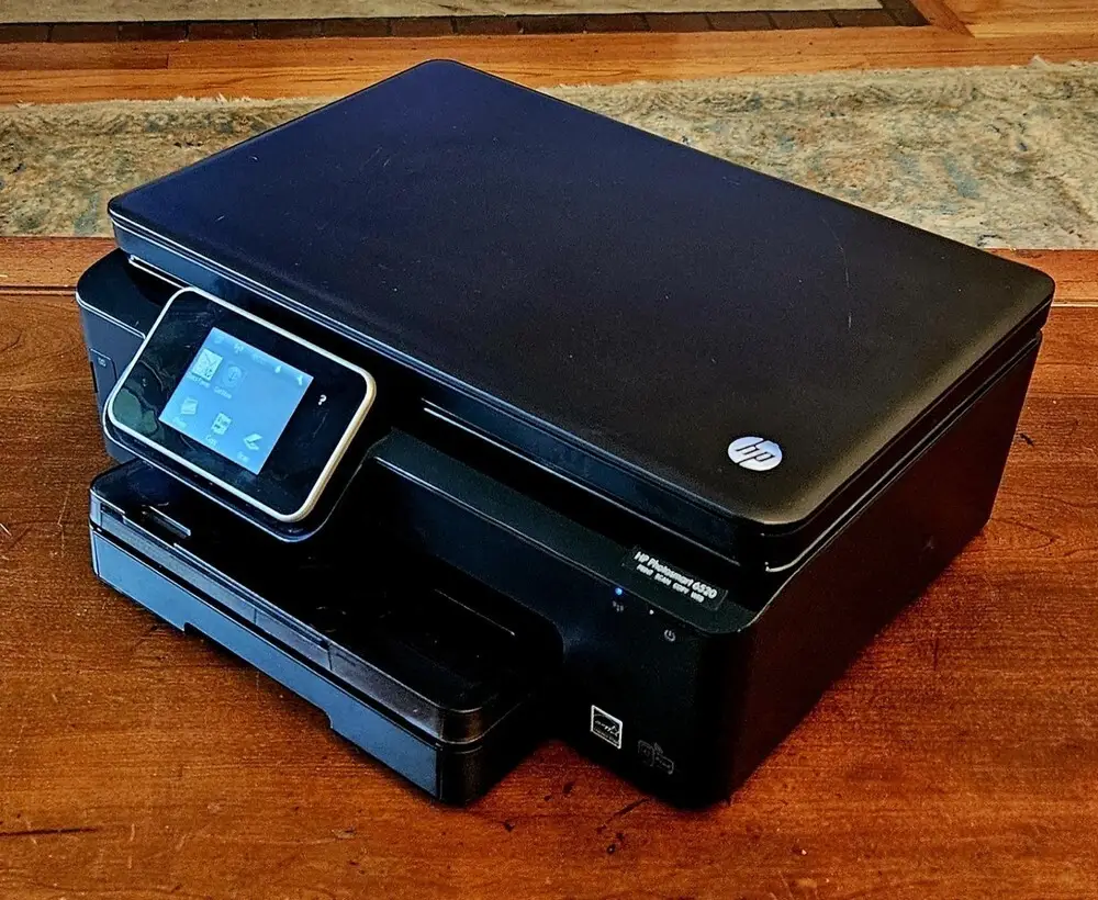 The HP Photosmart 6520 supports printing, scanning, copying, and wireless network printing functions.