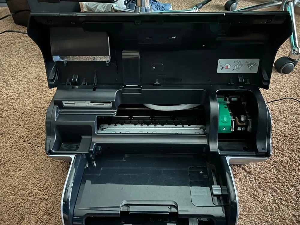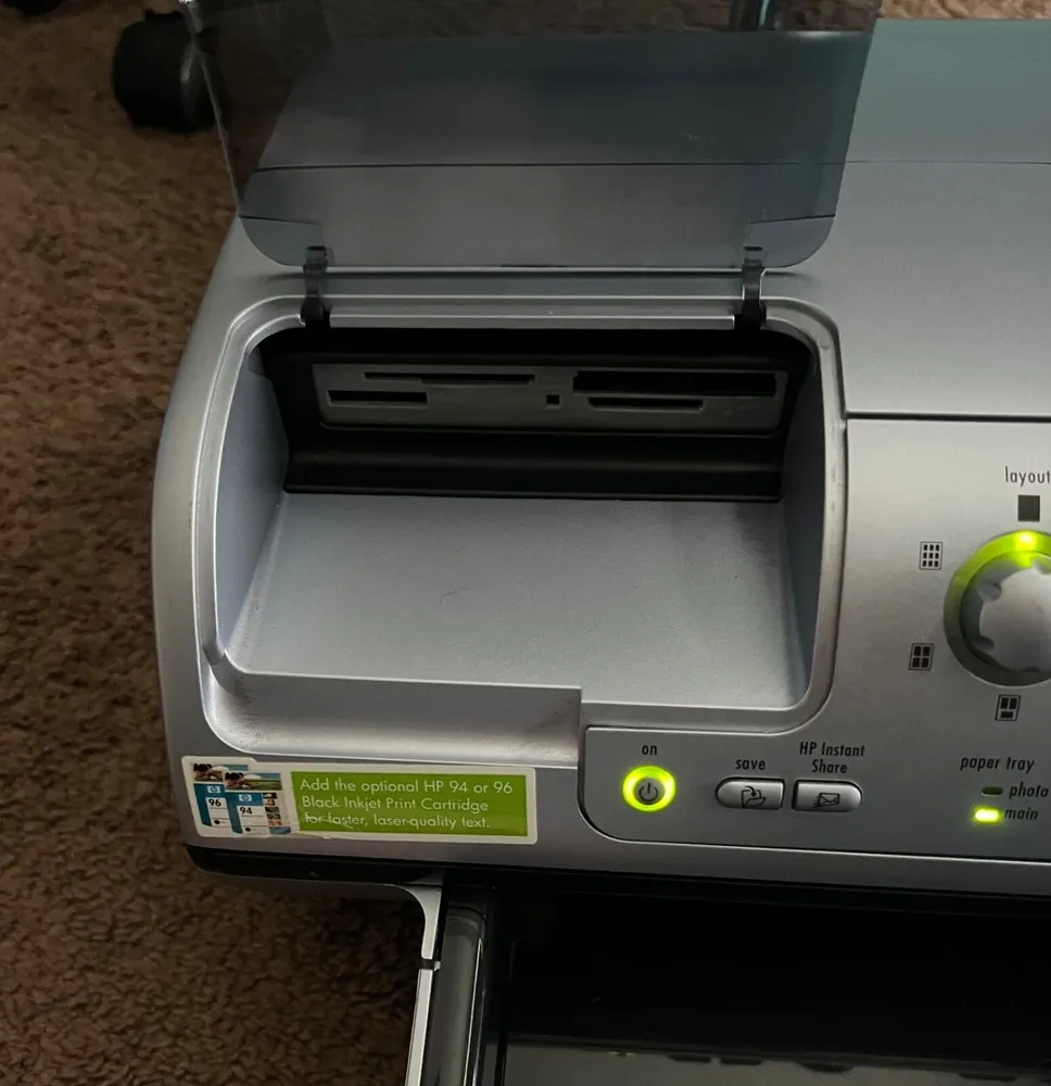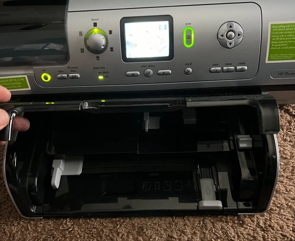 The Photosmart 8150 has a relatively slow document and photo print speed compared to newer printers. Although excellent for photo printing, its text print quality and speed are average. It lacks wireless connectivity options common in more recent printers, limiting convenience with mobile devices. The printer is somewhat bulky and may require considerable desk space. Consumable cost is higher due to six individual ink cartridges, which might be expensive to replace frequently. The device software and drivers are not updated for recent operating systems, impacting compatibility with newer computers.