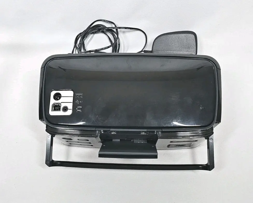 It connects to computers via a USB 2.0 port and supports fax over its built-in modem but does not offer wireless or network connectivity.