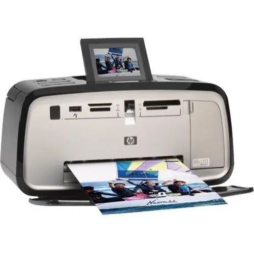 The HP PhotoSmart A717 (model number Q7102A) is an all-in-one inkjet printer released in 2005 designed for office use, featuring integrated printing, scanning, and fax capabilities.
