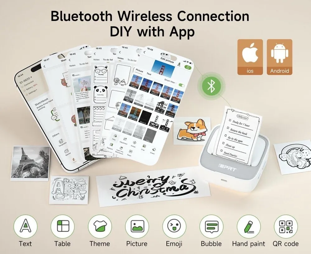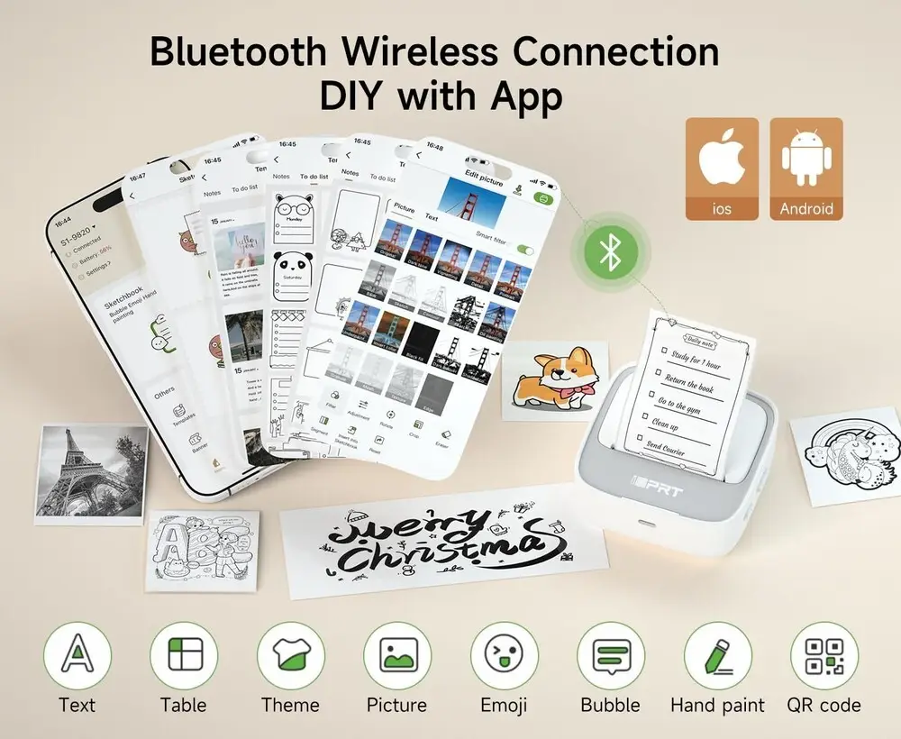 The iDPRT S1 uses thermal printing technology, which allows for high-quality black and white prints without the need for ink cartridges.