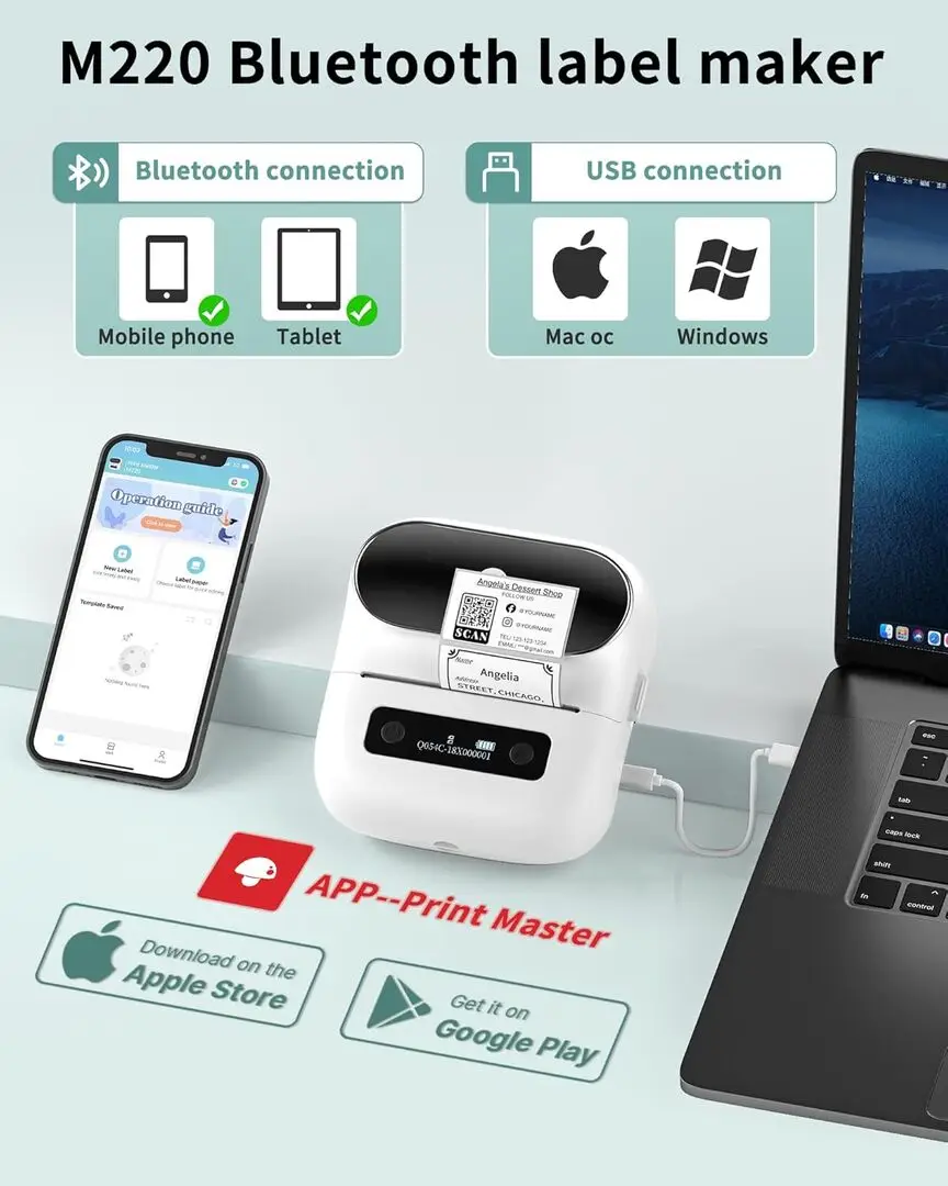 Included Components | Labels, M220 Label Printer, Manual, USB Type-C Charging Cable |