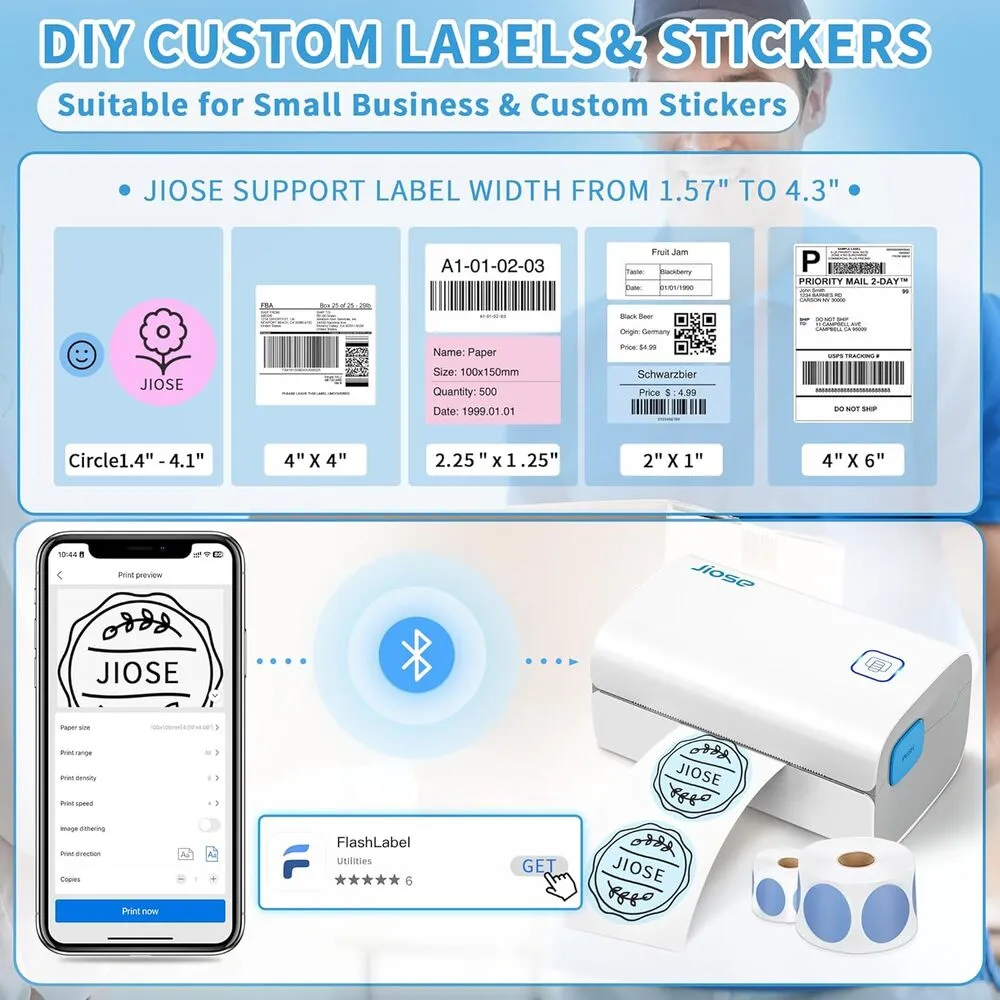 The Jiose J500BT supports USB and Bluetooth connectivity options, allowing both wired and wireless printing.