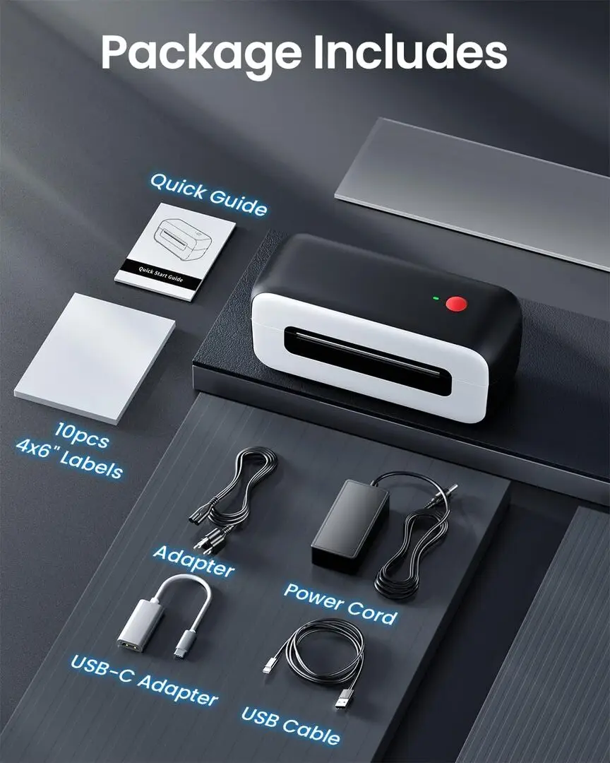 Included Components | 1 * B246D Pink Shipping Label printer, 1 * Label Printer Quick Start Guide, 1 * Power Cord&Adapter for Shipping Label Printer, 1 * USB-C adapter for macOS, 10 * 4x6 Shipping Labels |