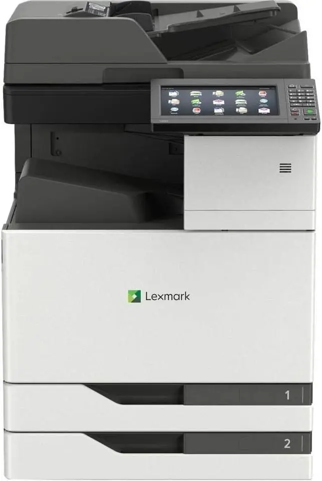 The Lexmark CX921de is a versatile multifunction printer designed for enterprise-level office environments. It integrates print, copy, scan, and fax capabilities into a single robust device. The CX921de utilizes laser printing technology with a print speed of up to 40 pages per minute for both color and black-and-white documents. It supports printing resolutions up to 1200 x 1200 dpi, ensuring high-quality output. Equipped with a 750 MHz processor and 256 MB of RAM (expandable), it efficiently handles complex print jobs and multitasking needs. Connectivity options include Gigabit Ethernet and USB 2.0, enabling seamless integration into networked office setups.