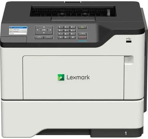 The Lexmark MS621dn is a monochrome laser printer designed for medium to large office environments where speed and reliability are critical. It features a robust print engine capable of producing sharp black and white documents with a resolution up to 1200 x 1200 dpi. The device supports duplex printing by default, allowing double-sided printing to save paper. Equipped with a fast printer processor and substantial memory, it ensures high throughput and efficient handling of complex print jobs. Connectivity options include both Ethernet networking and USB interfaces to integrate within varied office setups. The MS621dn supports multiple paper sizes and types, backed by a flexible input paper capacity that can be expanded with additional trays for heavy usage scenarios.