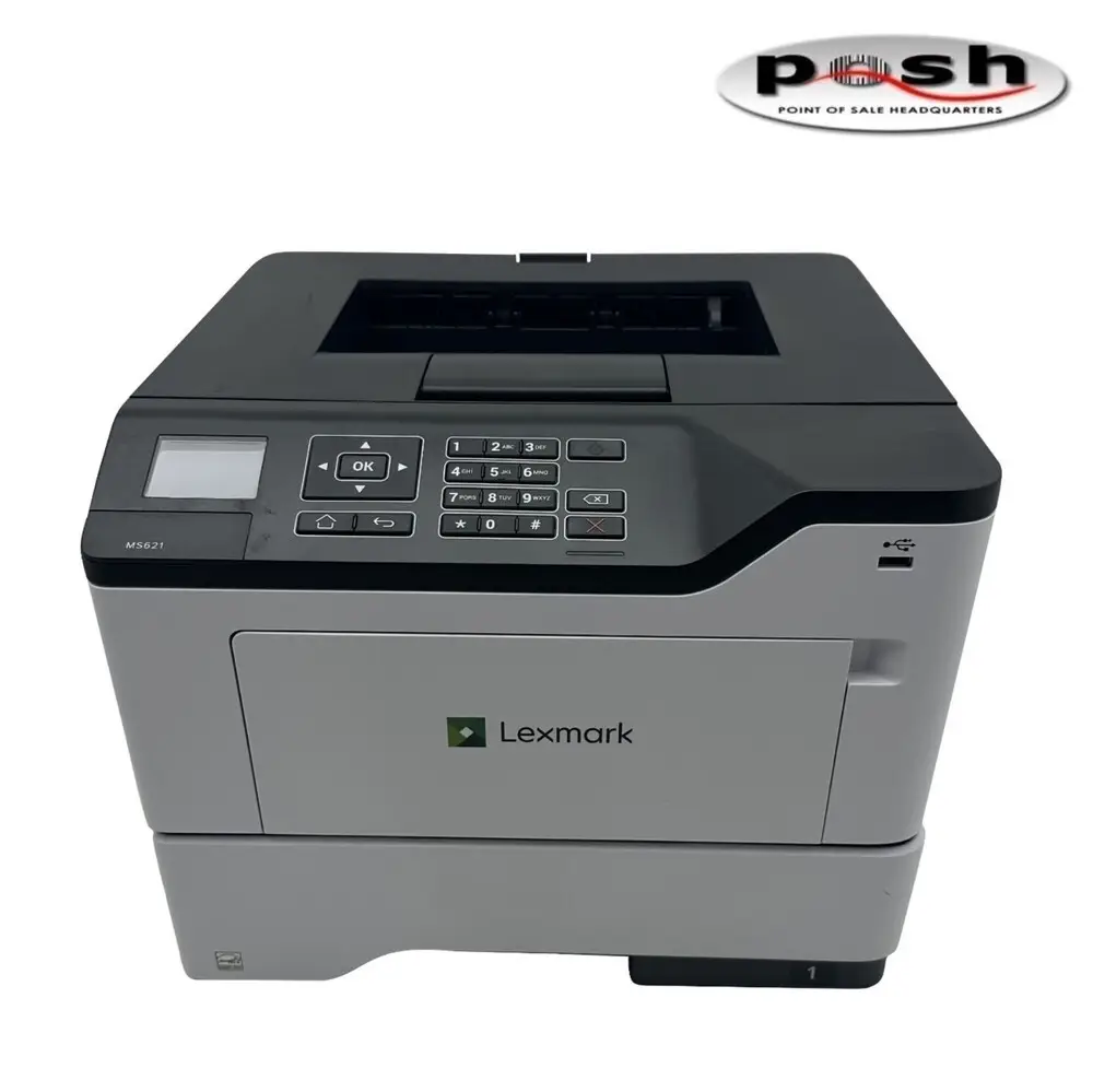 The Lexmark MS621dn is a monochrome laser printer designed for office use, offering robust performance and reliability. It features a print speed of up to 50 pages per minute with a resolution of 1200 x 1200 dpi, ensuring sharp and professional-quality prints. The printer uses a 800 MHz dual-core processor to handle complex print jobs efficiently. It supports automatic duplex printing, helping reduce paper consumption and costs. Connectivity options include USB 2.0 and Gigabit Ethernet, allowing for flexible network integration. With a standard input capacity of 350 sheets and expandable options, the MS621dn can handle medium to high volume print environments with ease.
