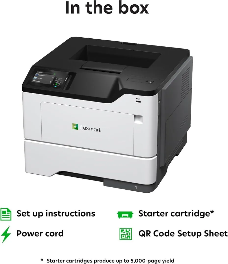 The Lexmark MS631dw is a monochrome laser printer designed to deliver high-quality black and white prints with a print speed of up to 50 pages per minute, making it suitable for office environments with moderate to heavy printing needs.