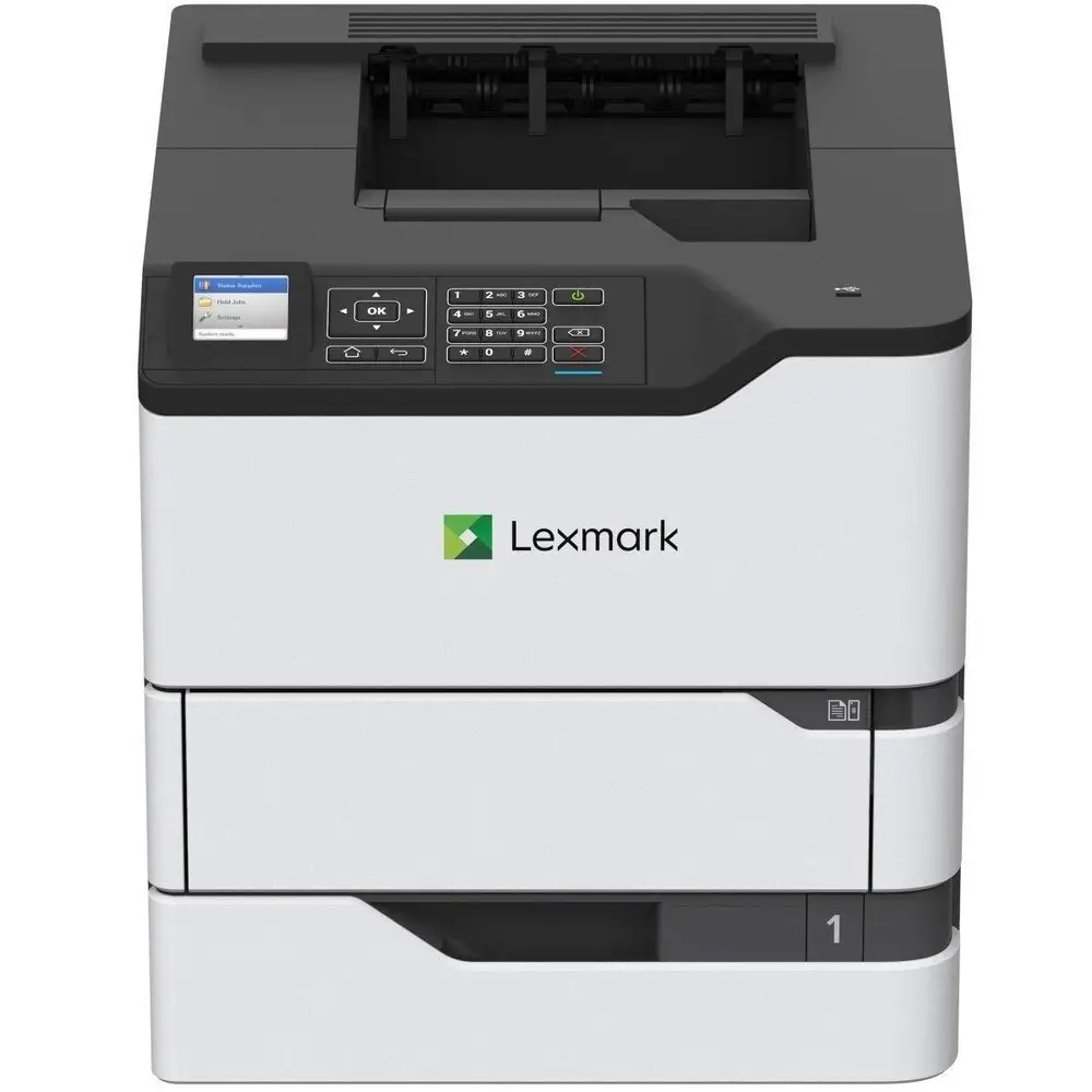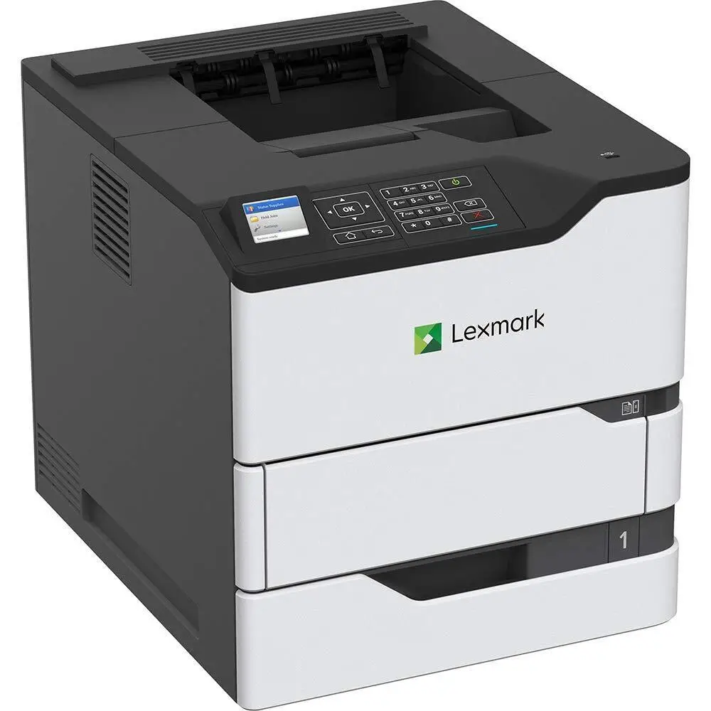 The Lexmark MS821dn is a high-performance monochrome laser printer tailored for demanding office applications. It features a print speed of up to 52 pages per minute, backed by a powerful 800 MHz dual-core processor and 512 MB standard RAM that can be expanded, facilitating efficient job processing. Connectivity options include built-in Gigabit Ethernet and USB 2.0 ports, enabling seamless integration into office networks. The printer supports a variety of media sizes and types, with a maximum input capacity of 2,100 sheets via multiple trays for uninterrupted printing. Its resolution of 1,200 x 1,200 dpi ensures sharp, clear printouts suitable for text and detailed graphics. The device utilizes Lexmark's security features such as secure print and user authentication to protect sensitive documents.