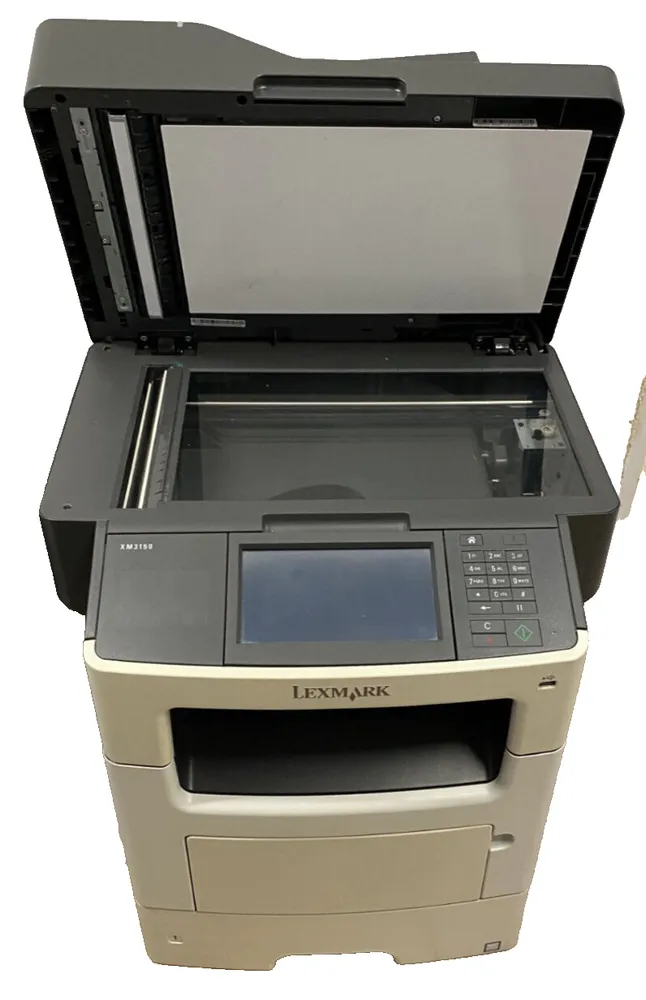 The Lexmark XM3150 is a multifunction laser printer designed for office use, combining printing, copying, scanning, and faxing capabilities in a single unit. It features a robust printing engine capable of delivering high-quality monochrome prints at speeds up to 35 pages per minute, suitable for medium-sized workgroups. The device supports a maximum print resolution of 1200 x 1200 dpi, ensuring crisp text and clear images. It includes a 7-inch color touch screen for easy navigation and job management, enhancing user experience and workflow efficiency. Connectivity options include Ethernet, USB 2.0, and optional Wi-Fi, making network integration straightforward. The printer supports a range of automatic duplex printing and paper handling features, with multiple input trays adding versatility for various document types and sizes.