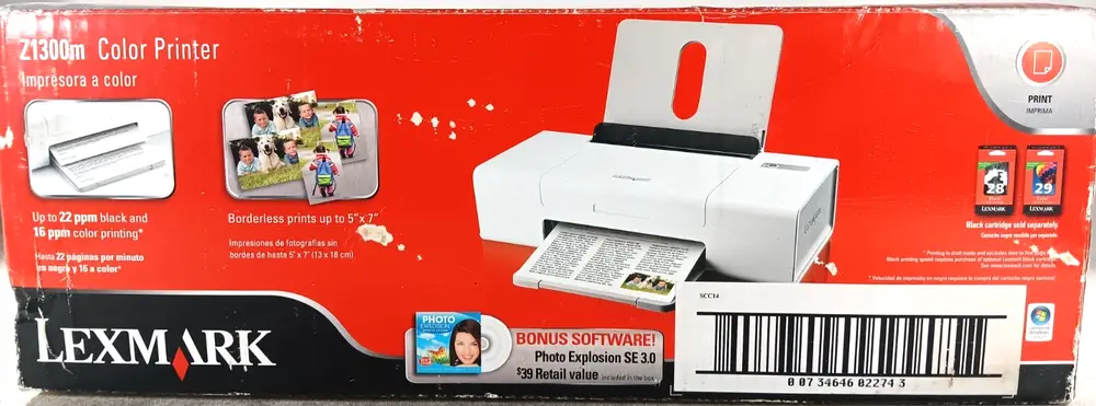 The Lexmark Z1300m lacks built-in network connectivity like Ethernet or Wi-Fi, limiting its use to USB or parallel connections only. It does not support color printing, which may be a drawback for offices needing versatile output types. The memory (32 MB) is relatively low by modern standards, restricting performance with complex print jobs. It does not feature duplex (automatic double-sided) printing, increasing paper consumption for two-sided documents. The printer’s monochrome-only scanning and copying functions are absent, requiring separate devices for these tasks. Firmware updates and driver support may be limited due to the model's discontinued status, affecting compatibility with latest operating systems.