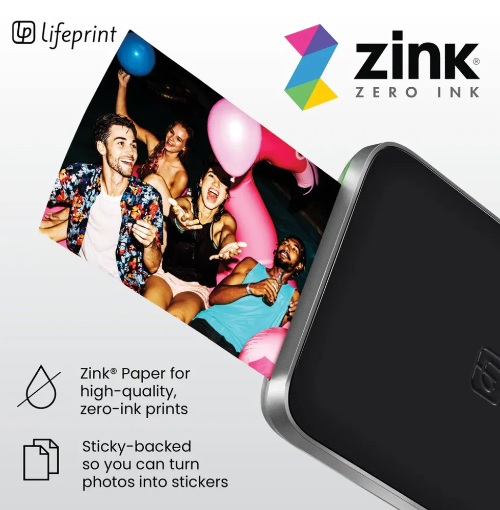 It uses ZINK (Zero Ink) printing technology which requires no ink cartridges.