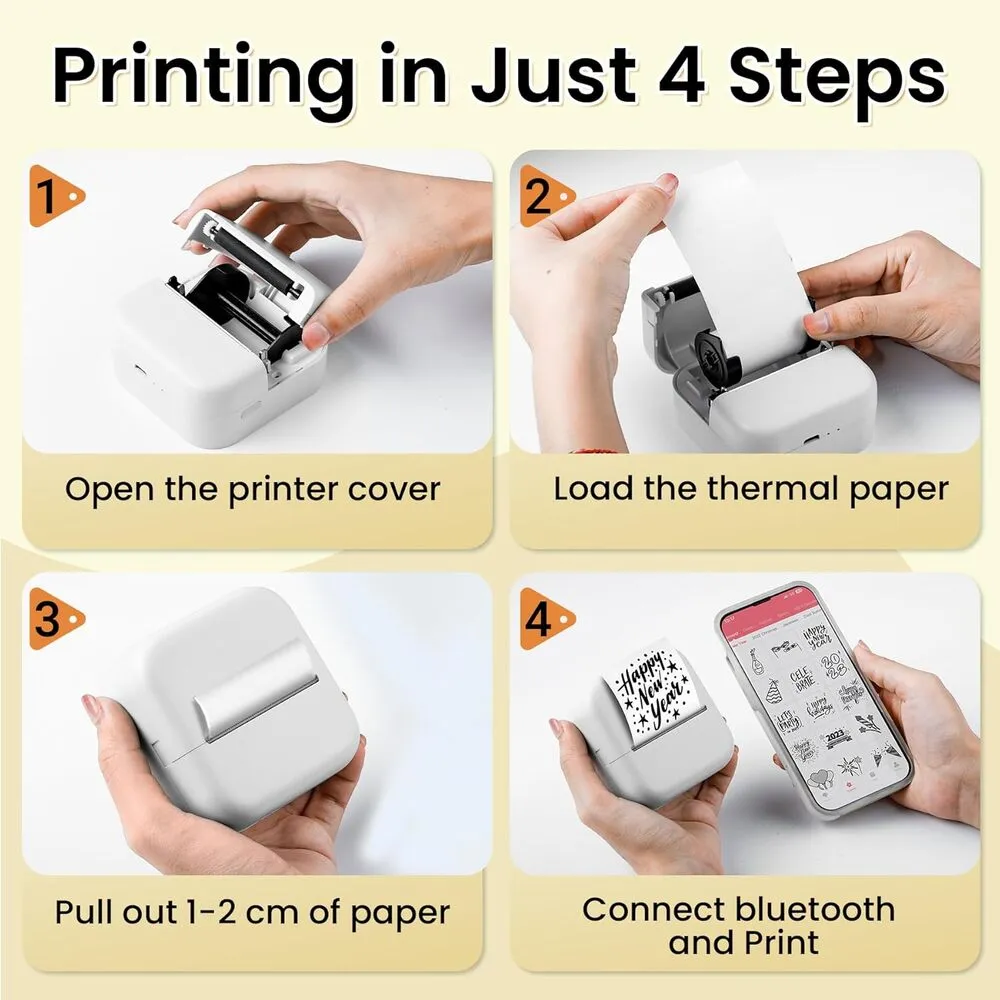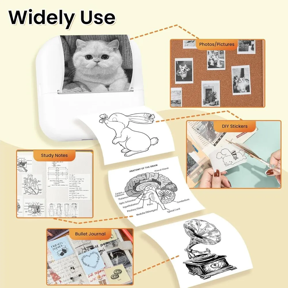 The M02L Portable Thermal Sticker Printer is a compact, battery-powered device designed for fast, quiet, and efficient thermal printing of labels and stickers without the need for ink or toner. It uses direct thermal printing technology, which relies on heat-sensitive paper, enabling printouts on demand with sharp text and graphics.