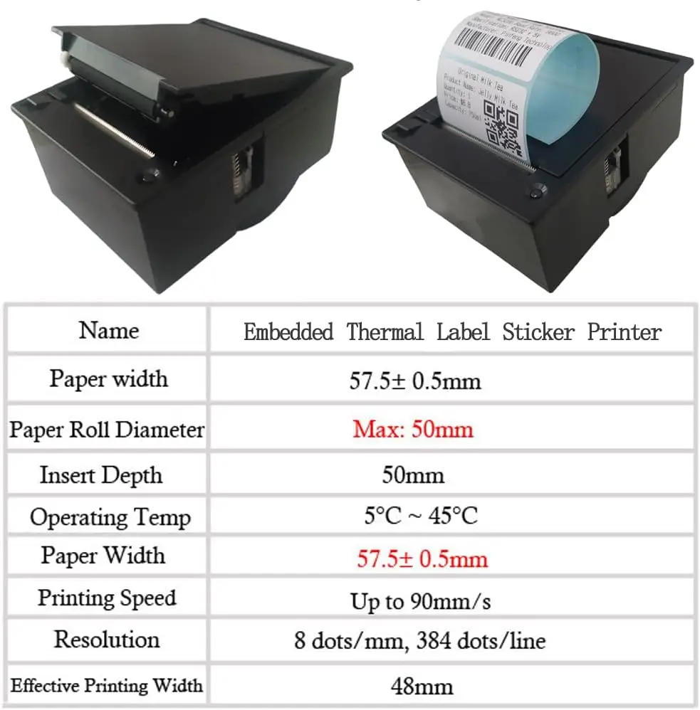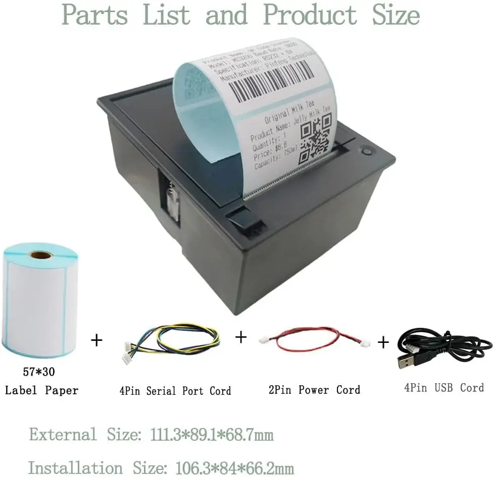 Included Components | Thermal label printer, power cord, serial port cable, USB cable, thermal label paper |