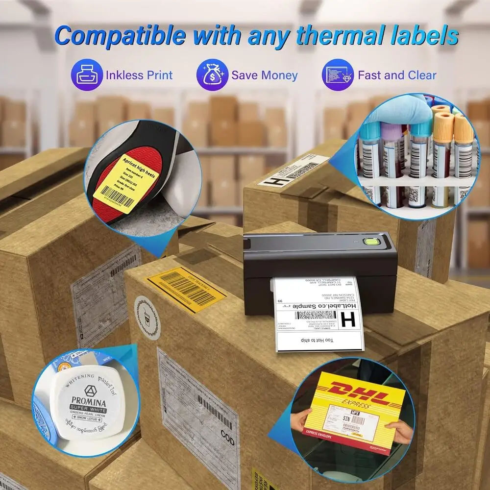 Compatible with standard 4x6 inch labels, it supports varied labeling applications from shipping to inventory management.