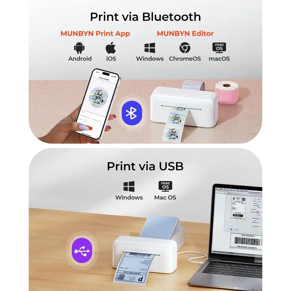 The MUNBYN RW402B RealWriter is a compact office electronics device designed primarily for efficient industrial and retail printing applications. It integrates direct thermal printing technology that eliminates the need for ink or toner, ensuring lower maintenance costs.