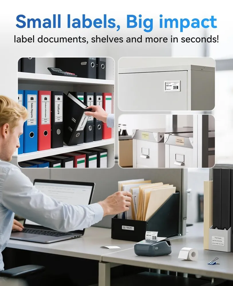 It supports various label sizes and formats mainly used for office labeling and documentation.