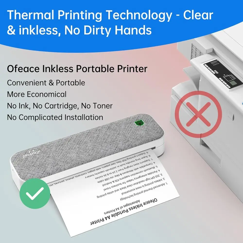 One limitation of the Ofeace A4 printer includes its moderate print speed which may be slower compared to high-end office printers. It lacks advanced wireless connectivity such as Wi-Fi or Bluetooth. The device does not support automatic duplex printing, requiring manual paper reinsertion for double-sided prints. Its paper tray capacity is limited, necessitating frequent replenishment for large print jobs. The printer is primarily intended for standard A4 paper sizes, restricting its use for larger format documents. Some users may find the absence of an LCD touchscreen interface less intuitive compared to newer models.